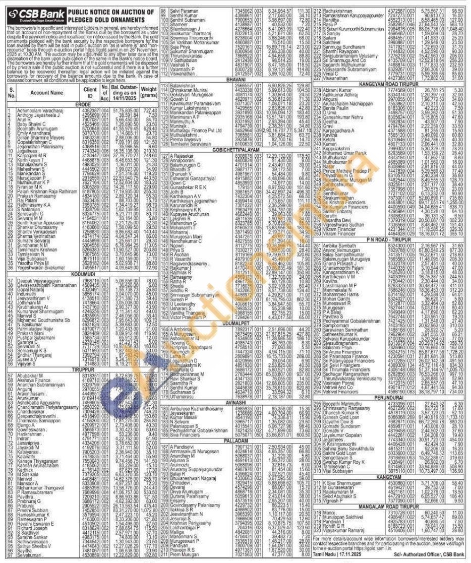 CSB Bank Gold Auctions Auction in Erode
