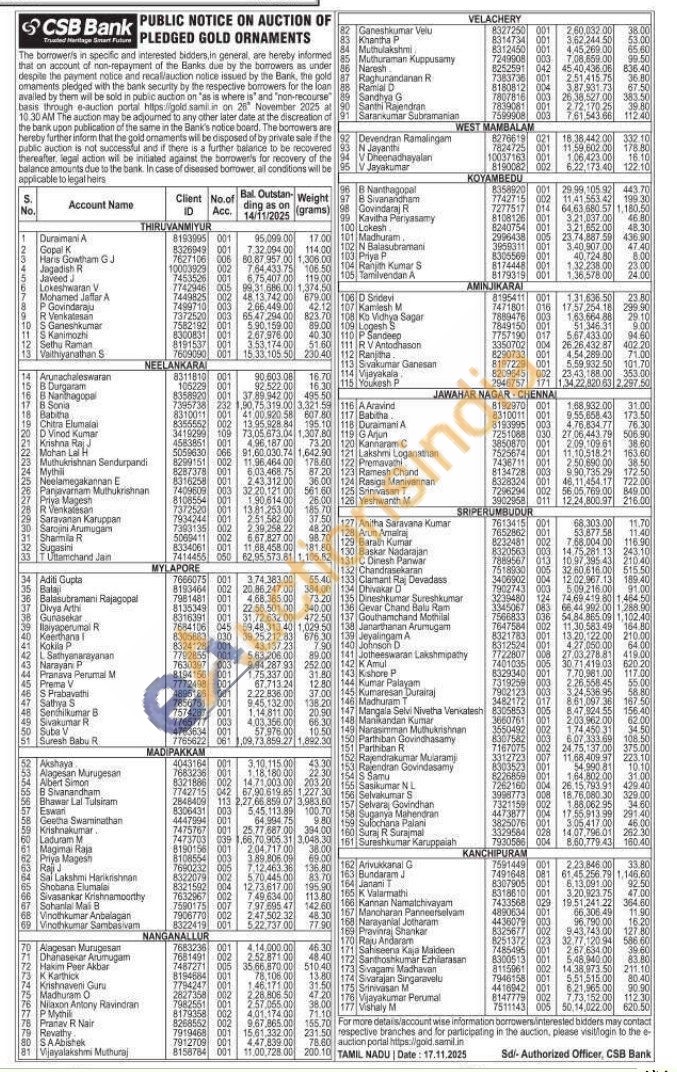 CSB Bank Gold Auctions Auction in Kanchipuram