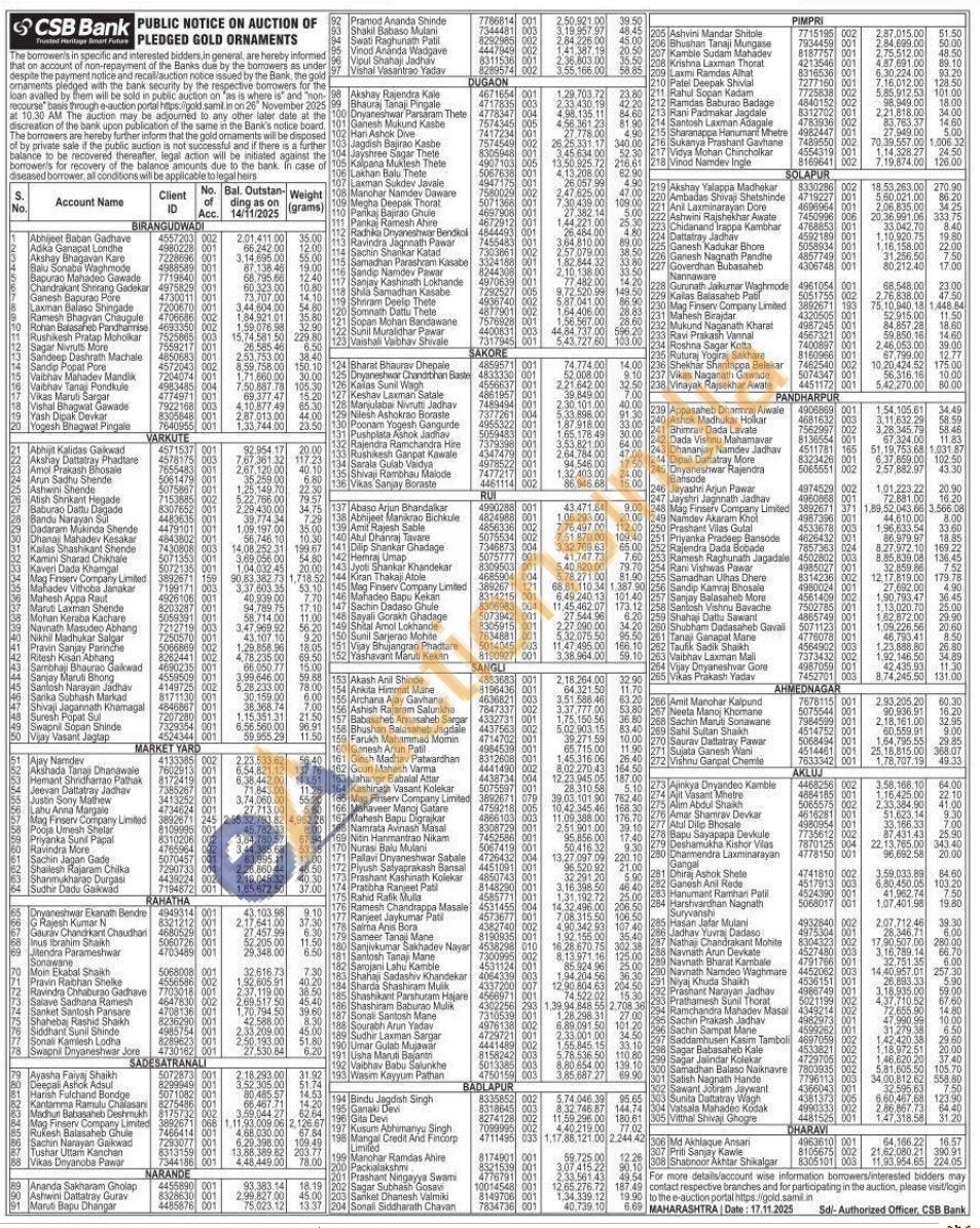 CSB Bank Gold Auctions Auction in Sangli