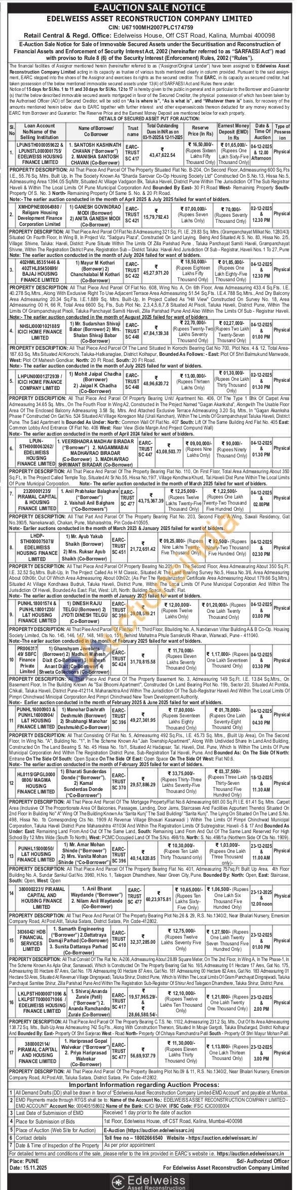 PROPERTY DESCRIPTION: All That Consist Of The flat No. A-206, Admeasuring About 28.89 Square Meter, On The 2nd Floor, In Wing A, In The Phase-1, In The Scheme Known As Apla Ghar, Sanaswadi, Which Is Constructed On The Property Bearing Gat No. 165, Admeasuring 01 Hectare 17 Ares, Gat No. 175, Admeasuring 00 Hectare 87 Ares, Gat No. 176 Admeasuring 00 Hectare 87 Ares, Gat No. 181 Admeasuring 00 Hectare 82 Ares, Gat No. 183 Admeasuring 01 Hectare 53 Ares, Situated At Revenue Village Dingrajwadi, Taluka Shirur, District Pune, Which Is Within The Local Limits Of Gram Panchayat Dingrajwadi, Taluka Panchayat Samitee Shirur, Zilla Parishad Pune And Within The Registration Sub-Registrar Of Shirur And Talegaon Dhamdhere, Taluka Shirur, District Pune
