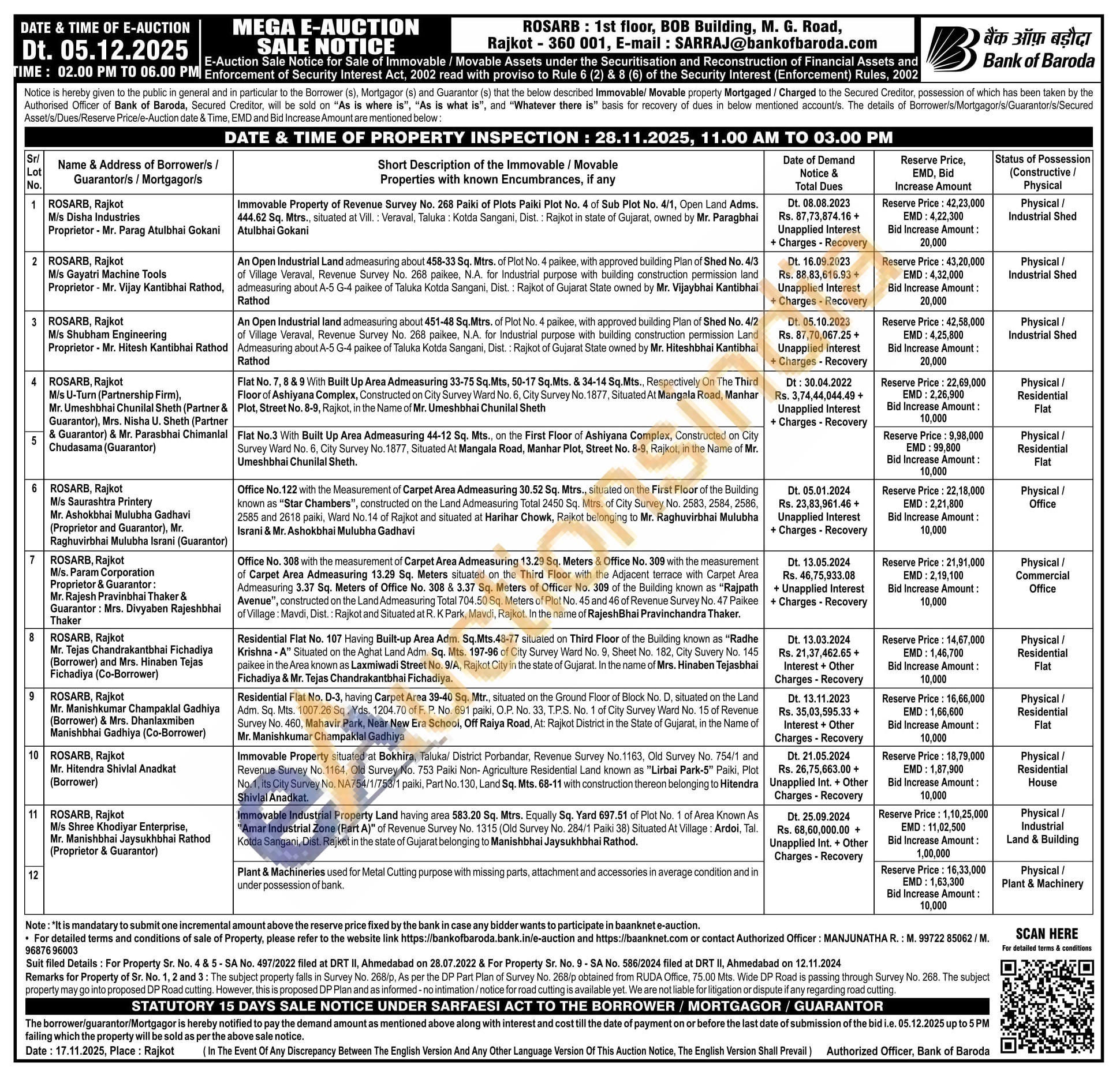 Immovable Property situated at Bokhira, Taluka/ District Porbandar, Revenue Survey No. 1163, Old Survey No. 754/1 and Revenue Survey No. 1164, Old Survey No. 753 Paiki Non-Agriculture Residential Land known as "Lirbai Park-5" Paiki, Plot No. 1, its City Survey No. NA754/1/753/1 paiki, Part No. 130, Land Sq. Mts. 68-11 with construction thereon belonging to Hitendra Shivlal Anadkat