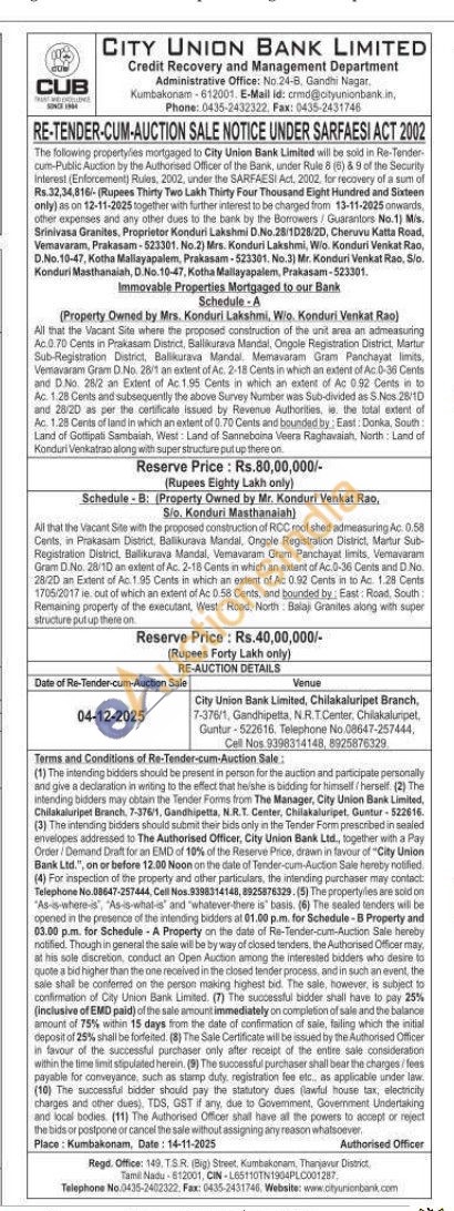 All that the Vacant Site with the proposed construction of RCC roof shed admeasuring Ac. 0.58 Cents, in Prakasam District, Balikurava Mandal, Ongole Registration District, Martur Sub-Registration District, Ballikurava Mandal, Vemavaram Gram Panchayat limits, Vemavaram Gram D.No. 28/10 an extent of Ac. 2-18 Cents in which an extent of Ac.0-36 Cents and D.No. 28/2D an Extent of Ac. 1.95 Cents in which an extent of Ac 0.92 Cents in to Ac. 1.28 Cents 1705/2017 ie out of which an extent of Ac 0.58 Cents, and bounded by: East: Road, South: Remaining property of the executant, West Road, North Balaji Granites along with super structure put up there on