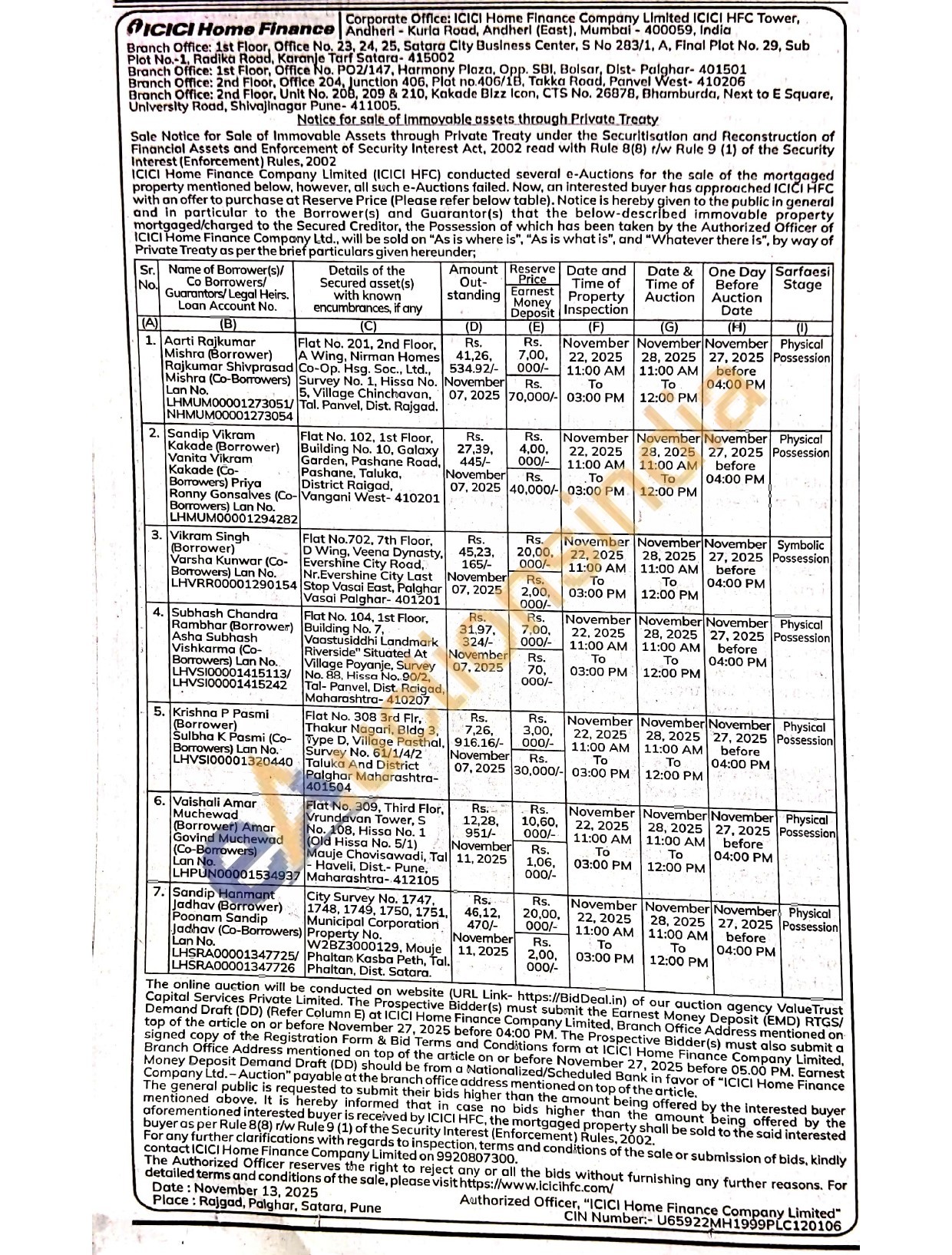 Flat No. 308 3rd Flr, Thakur Nagari, Bldg 3, Type D. Village Pasthal, Survey No. 61/1/4/2 Taluka And District Palghar Maharashtra-401504