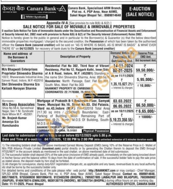 Mortgage of Prakosth B-1, Basement Floor, Samyak Tower, Muncipal No. 16. Street No.03, Old Palasia, Ward no.43, Indore (M.P.) Pin-452018 Total Area 217.30 sq mtrs/ (2340sqft) Boundaries: Parking of Building, West- Remaining Part of Basement (B-2), North- M.O.S Of Building, M.O.S of Building