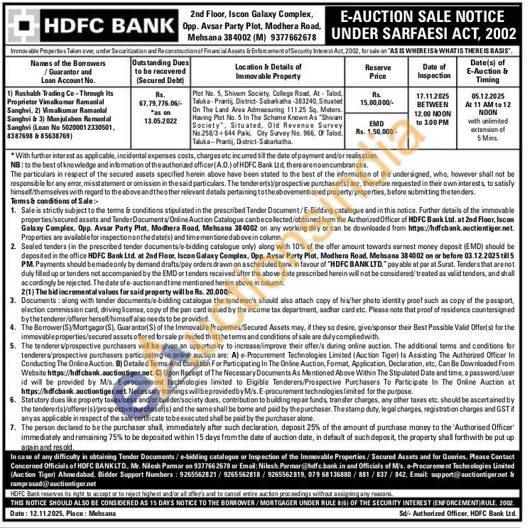 Plot No. 5, Shivam Society, College Road, At-Talod, Taluka-Prantij, District-Sabarkatha-383240, Situated On The Land Area Admeasuring 111.25 Sq. Meters. Having Plot No. 5 In The Scheme Known As "Shivam Society, Situated, Old Revenue Survey No.258/3+644 Paiki, City Survey No. 966, Of Talod, Taluka Prantij, District-Sabarkatha.