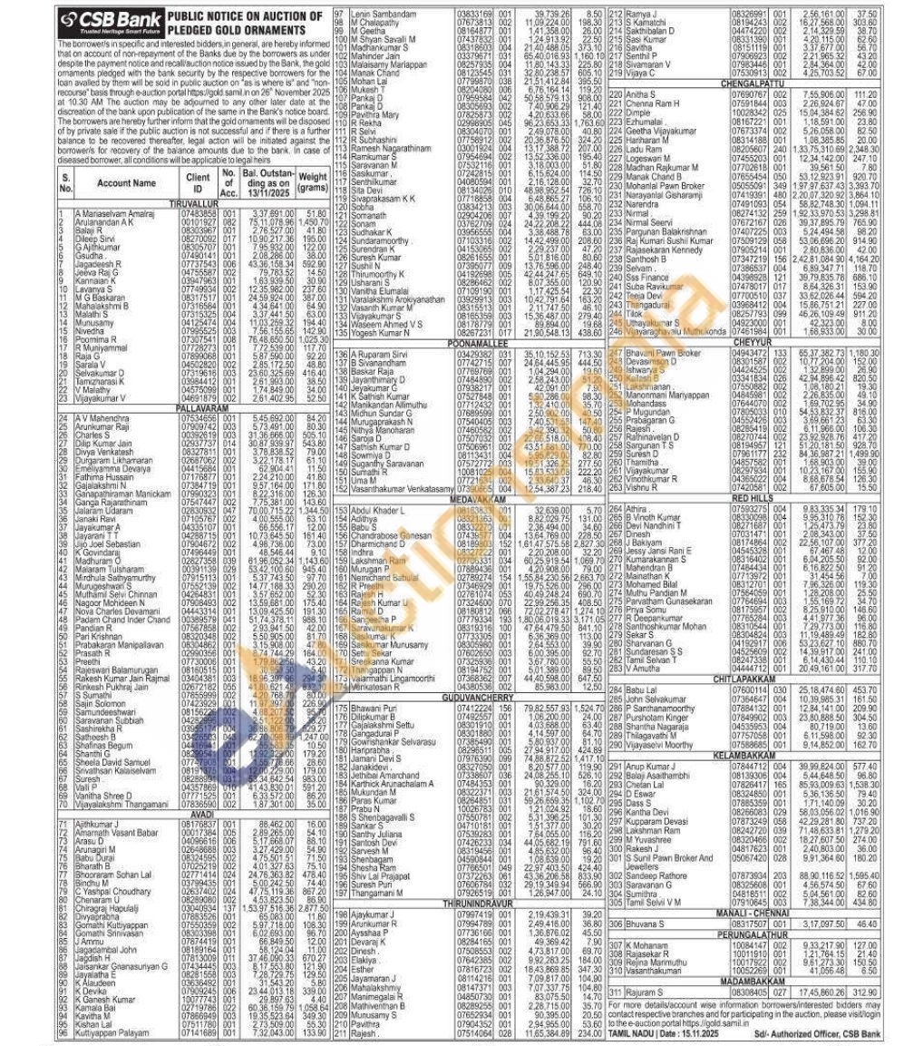 CSB Bank Gold Auctions Auction in Tiruvallur