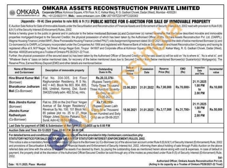 Flat No. 304-305, 3rd Floor Raghunandan Residency. RS No. 442+443, Block No 803, 804, 805, 806. Umbhel, Kemrej. Dist. Surat 394325 totally adm. 482.52 sq. mtrs.
