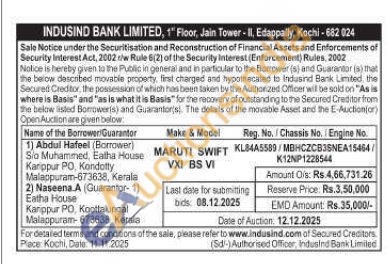 Make & Model MARUTI SWIFT VXI BS VI Reg. No. Chassis No. Engine No KL84A5580/MBHCZCB3SNEA 15464/
