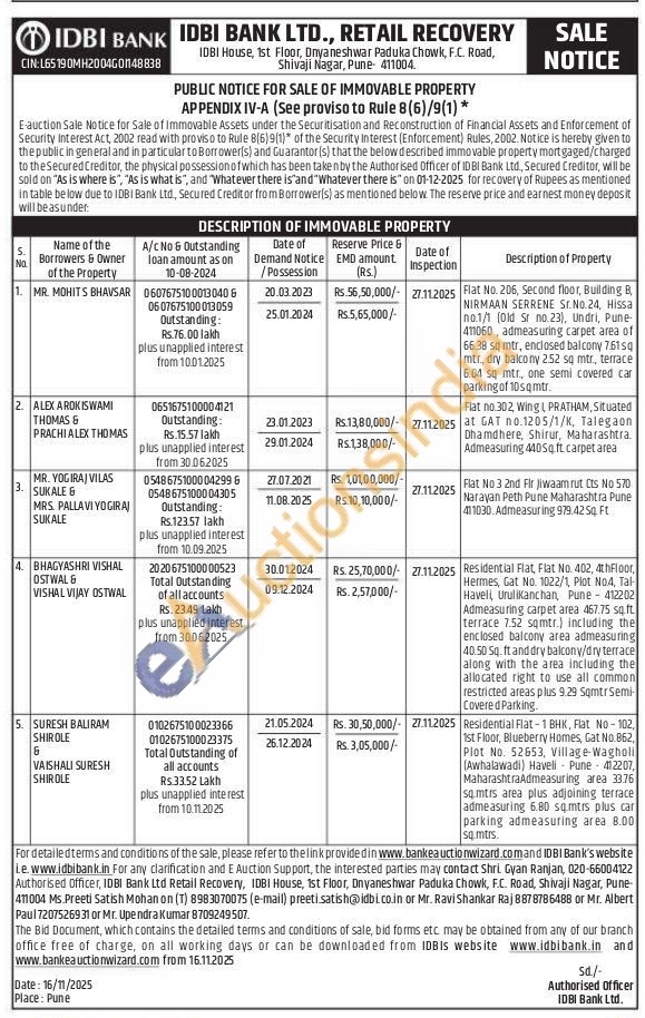 Fiat No. 206, Second floor, Building B NIRMAAN SERRENE Sr.No.24, Hissa no.1/1 (Old Sr no.23), Undri, Pune 411060, admeasuring carpet area of 66.38 sq mtr, enclosed balcony 7.61 sq mtr., dry balcony 252 sq mtr, terrace 6.04 sq mtr., one semi covered car parking of 10sqmtr.