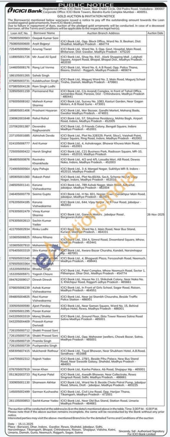 ICICI Bank Gold Auctions Auction in Vadodara