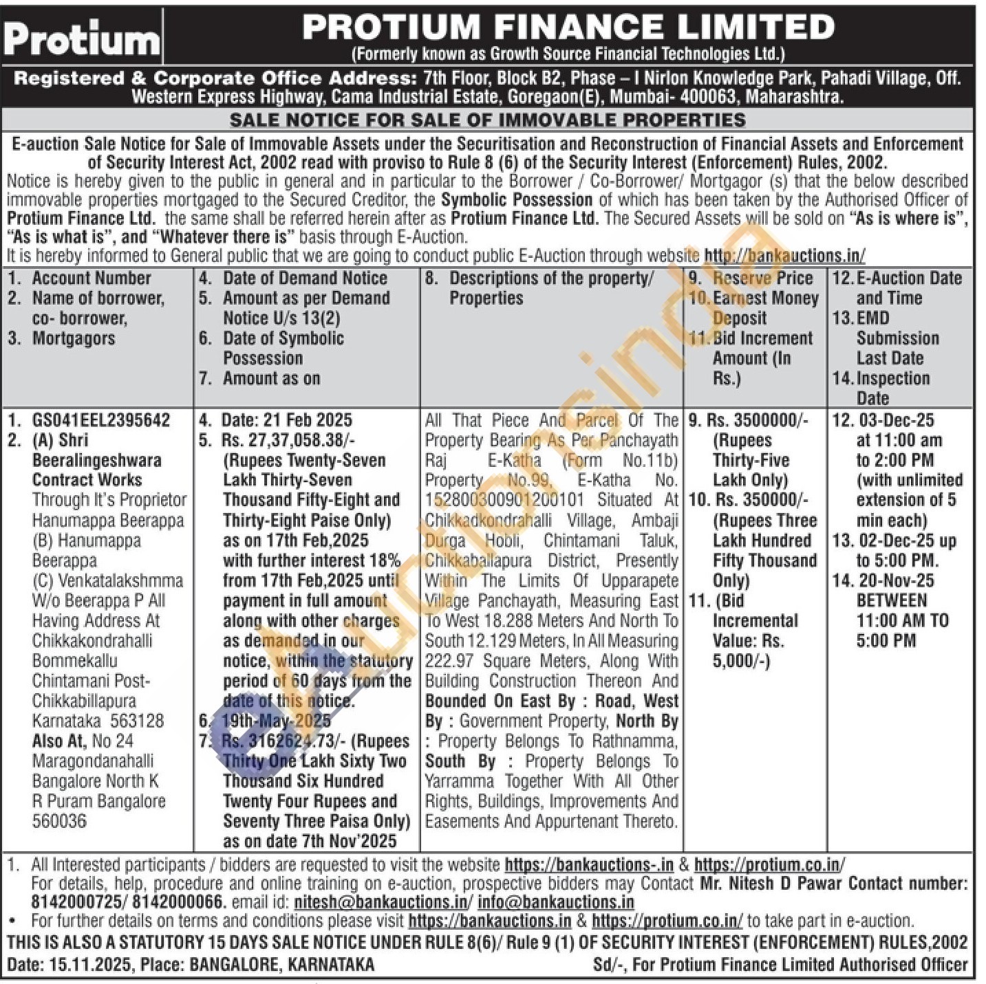 All That Piece And Parcel Of The Property Bearing As Per Panchayath Raj E-Katha (Form No.11b) Property No.99, E-Katha No. 152800300901200101 Situated At Chikkadkondrahalli Village, Ambaji Durga Hobli, Chintamani Taluk, Chikkaballapura District, Presently Within The Limits Of Upparapete Village Panchayath, Measuring East To West 18.288 Meters And North To South 12.129 Meters, In All Measuring 222.97 Square Meters, Along With Building Construction Thereon And Bounded On East By: Road, West By: Government Property, North By : Property Belongs To Rathnamma, South By Property Belongs To Yarramma Together With All Other Rights, Buildings, Improvements And Easements And Appurtenant Thereto