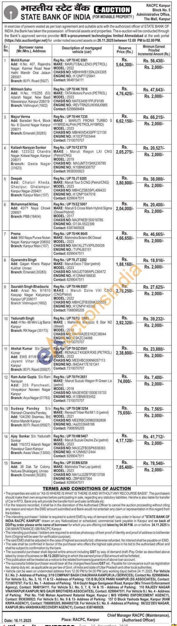 Reg No.: UP 78 GZ 0541 MAKE: RENAULT KIGER RXE (PETROL) MODEL: 2022 CHASIS NO: MEEHBC006N6057113 ENGINE NO.: B4DA417E161341