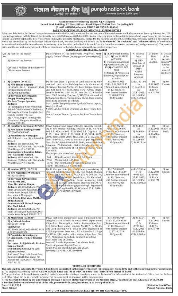 All that piece and parcel of Land & Butlding meas uring 0.02 acre, situated at Mouza -West Jitpur under Alipurduar Municipility Police Station Alipurduar. Dist-Alipurduar, under khattan No.3477, JL. No. 49, Gift Deed bearing No. 1-1954 of 2009 registered at ADSR Alipurduar, Book No. 1. CD Volume No. 31. Page No.329 to 334, under police station Alipurduar, Dis trict Alipurduar butted