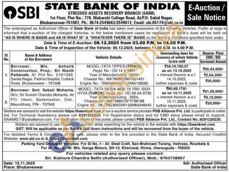 Contact: Sri Kishora Chandra Sethi (Authorised Officer), Mob.: 8763738667