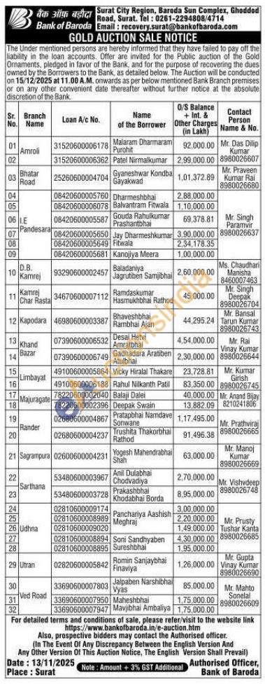 Bank of Baroda Gold Auctions Auction in Surat