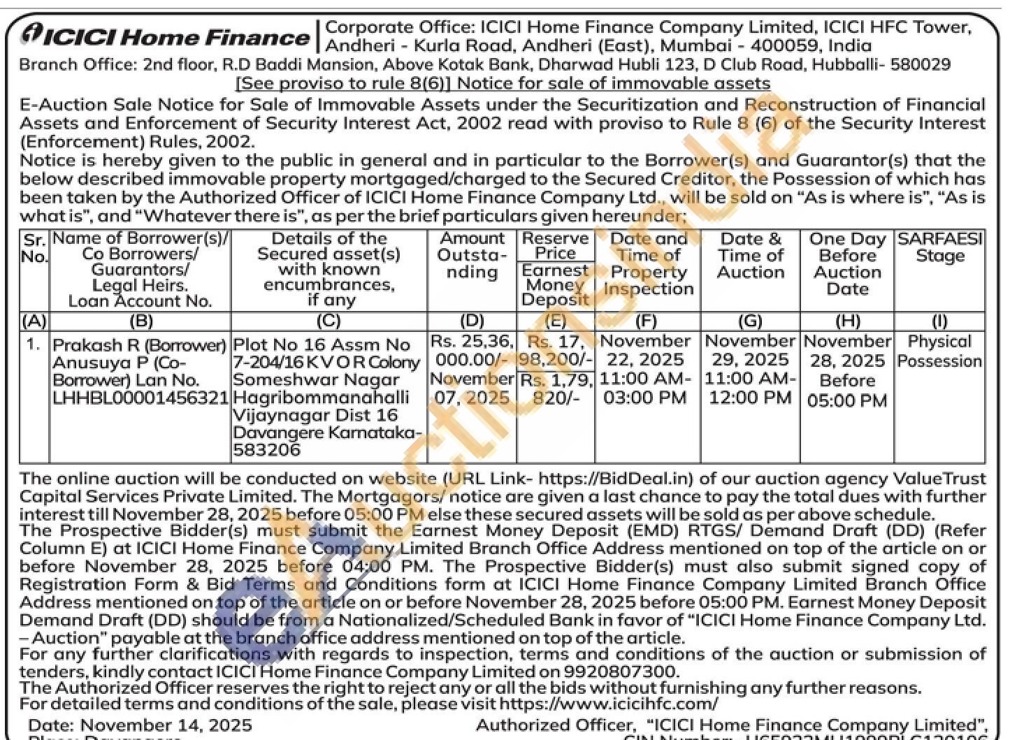 Plot No 16 Assm No Hagribommanahalli 7-204/16 KVOR Colony Someshwar Nagar Vijaynagar Dist 16 Davangere Karnataka-583206