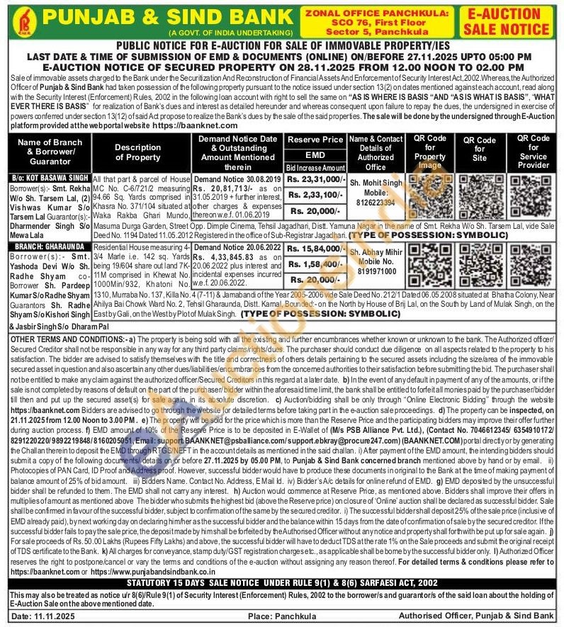 Residential House measuring 4-3/4 Marle i.e. 142 sq. Yards being 19/604 share out land 7 K-11M comprised in Khewat No 1000Min/932, Khatoni No.1310, Murraba No. 137, Killa No. 4 (7-11) & Jamabandi of the Year 2005-2006 vide Sale Deed No. 212/1 Dated 06.05.2008 situated at Bhatha Colony, Near Ahilya Bai Chowk Ward No. 2, Tehsil Gharaunda, Distt. Kamal, Bounded: on the North by House of Brij Lal, on the South by Land of Mulak Singh, on the Eastby Gali, on the Westby Plot of Mulak Singh.