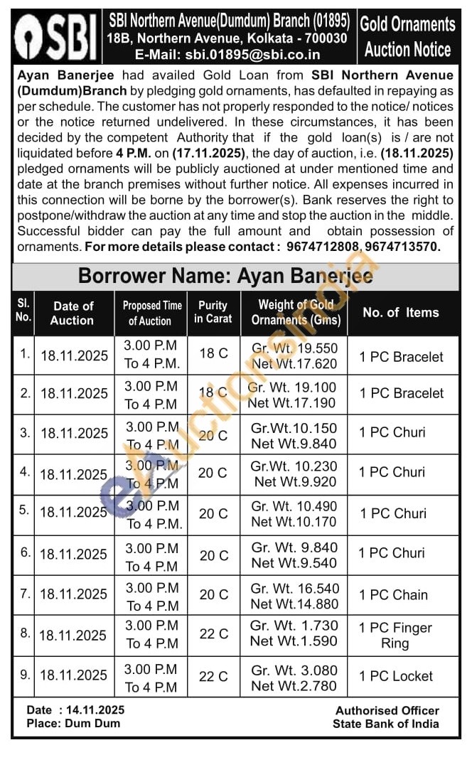State Bank of India Gold Auctions Auction in North 24 Parganas