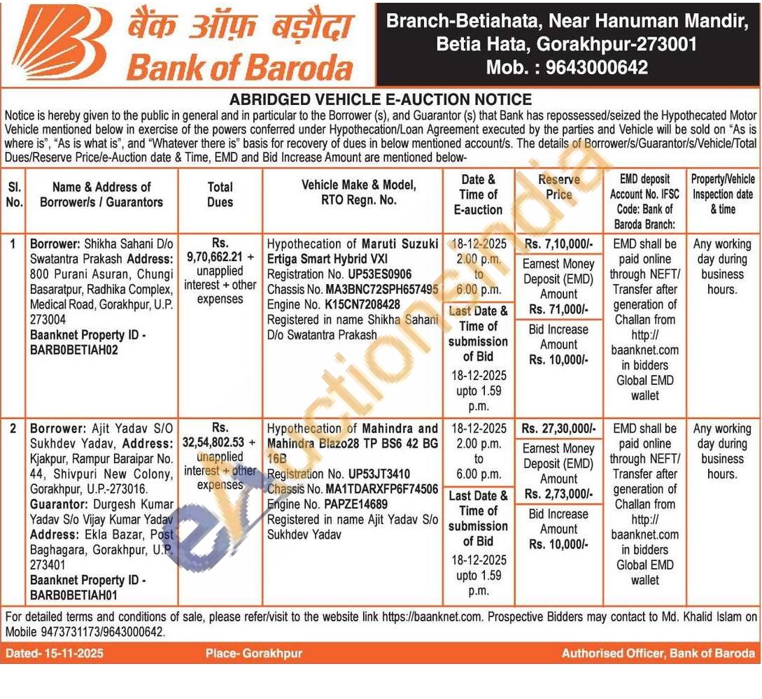 Hypothecation of Mahindra and Mahindra Blazo28 TP BS6 42 BG Registration No. UP53JT3410 Chassis No. MA1TDARXFP6F74506 Engine No. PAPZE14689 Registered in name Ajit Yadav S/o Sukhdev Yadav