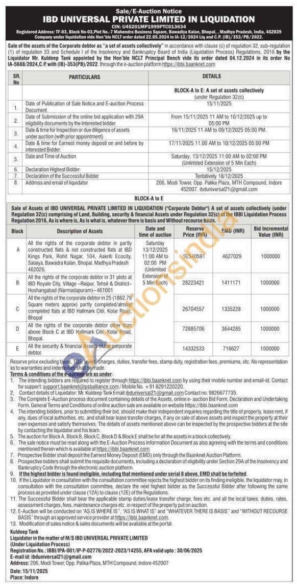 All the rights of the corporate debtor in 31 plots at IBD Royale City, Village-Raipur, Tehsil & District-Hoshangabad (Narmadapuram)-461001