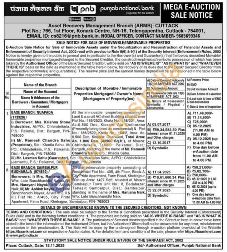All the immovable properties consisting of Land & a small AC sheet Building situated over Plot No: 185/2523, Khata No.: 156/201, Area: Ac.0.500 Dec, Kissam: Ata Sadharana (Presently being used as commercial) & Plot - No.: 185/2522, Khata No.: 166/2, Area: Ac. 0.500 Dec, Kissam: Gharabari, Total Area: Ac. 1.000 Dec. (43560 Sq.ft.), at Mouza: Chhindeikela, Tahasil: Paikamal, Dist.: Bargarh, standing in the name of Mr. Ramesh Chandra Sahu, S/o.: Khadia Sahu