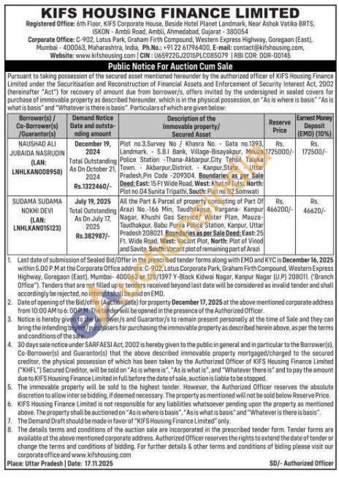 All the Part & Parcel of property consisting of Part Of Arazi No. 166 Min, Taudhakpue, Pargana Kanpur Nagar, Khushi Gas Service/ Water Plan, Mauza-Taudhakpur, Babu Purva Police Station, Kanpur, Uttar Pradesh 208021. Boundaries as per Sale Deed: East: 25 Ft. Wide Road, West: Vacant Plot, North: Pist of Vinod and Savita, South: Vacant plot of remaining part of Arazi
