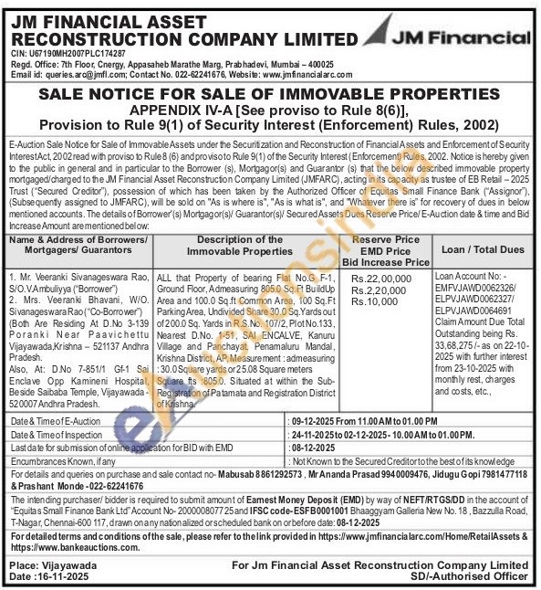 ALL that Property of bearing Flat No.G F-1, Ground Floor, Admeasuring 805.0 Sq. Ft Build Up Area and 100.0 Sq.ft Common Area, 100 Sq.Ft Parking Area, Undivided Share 30.0 Sq. Yards out of 200.0 Sq. Yards in R.S.No. 107/2, Plot No.133, Nearest D.No. 1-51, SAI ENCALVE, Kanuru Village and Panchayat, Penamaluru Mandal, Krishna District, AP, Measurement: admeasuring : 30.0 Square yards or 25.08 Square meters Square fts 805.0. Situated at within the Sub-Registration of Patamata and Registration District of Krishna.