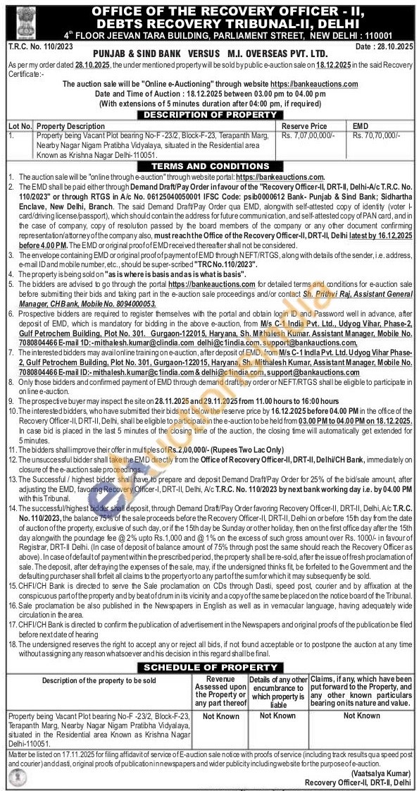 Property being Vacant Plot bearing No-F-23/2, Block-F-23, Terapanth Marg, Nearby Nagar Nigam Pratibha Vidyalaya, situated in the Residential area Known as Krishna Nagar Delhi-110051