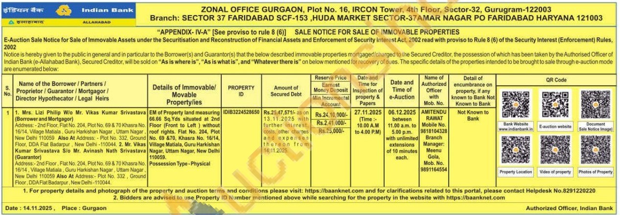 EM of Property land measuring 66.66 Sq.Yds situated at 2nd Floor (Front to Left) without roof rights. Flat No. 204, Plot No. 69 870, Khasra No. 16/14, Village Matiala, Guru Harkishan Nagar, Uttam Nagar, New Delhi 110059