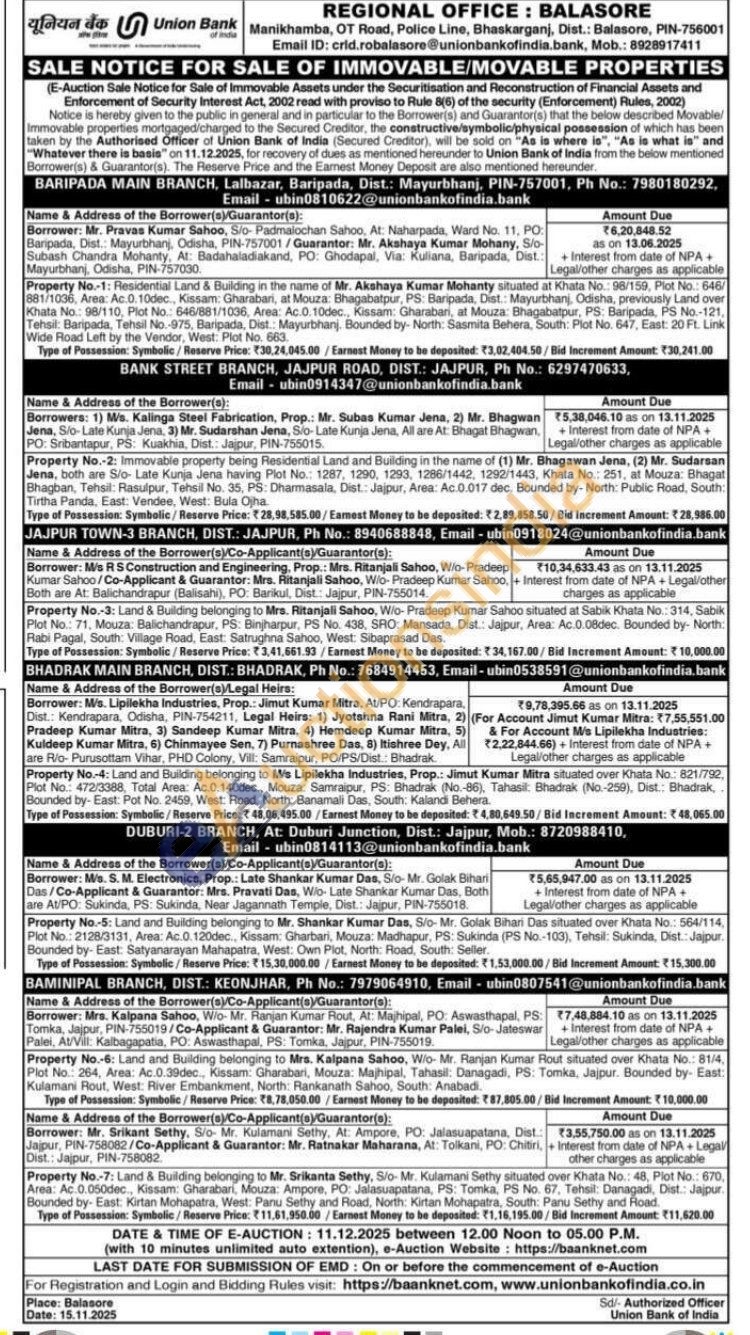 Property No.-1: Residential Land & Building in the name of Mr. Akshaya Kumar Mohanty situated at Khata No.: 98/159, Plot No.: 646/881/1036, Area: Ac.0.10dec., Kissam: Gharabari, at Mouza: Bhagabatpur, PS: Baripada, Dist.: Mayurbhanj, Odisha, previously Land over Khata No.: 98/110, Plot No.: 646/881/1036, Area: Ac.0.10dec., Kissam: Gharaban, at Mouza: Bhagabatpur, PS: Baripada, PS No.-121, Tehsil: Baripada, Tehsil No.-975, Baripada, Dist.: Mayurbhanj. Bounded by- North: Sasmita Behera, South: Plot No. 647, East: 20 Ft. Link