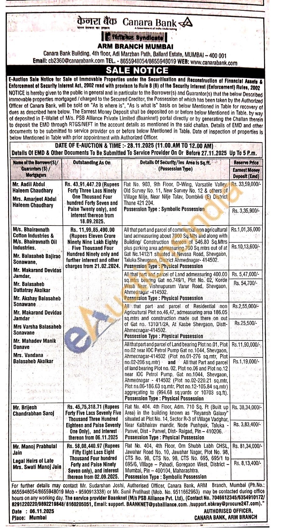 Mr. Sudarshan Joshi, Authorised Officer 8655948054/8655948019 Mob-9590913338) or Mr. Sunil Pratihast (Mob. No. 9511662953