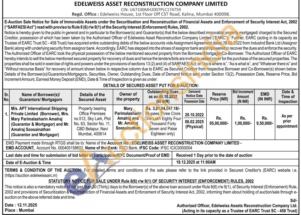 Property bearing Office Premises no.512, Sky Lark, Plot No. 63, Sector No. 11, CBD Belapur, Navi Mumbai, 400614