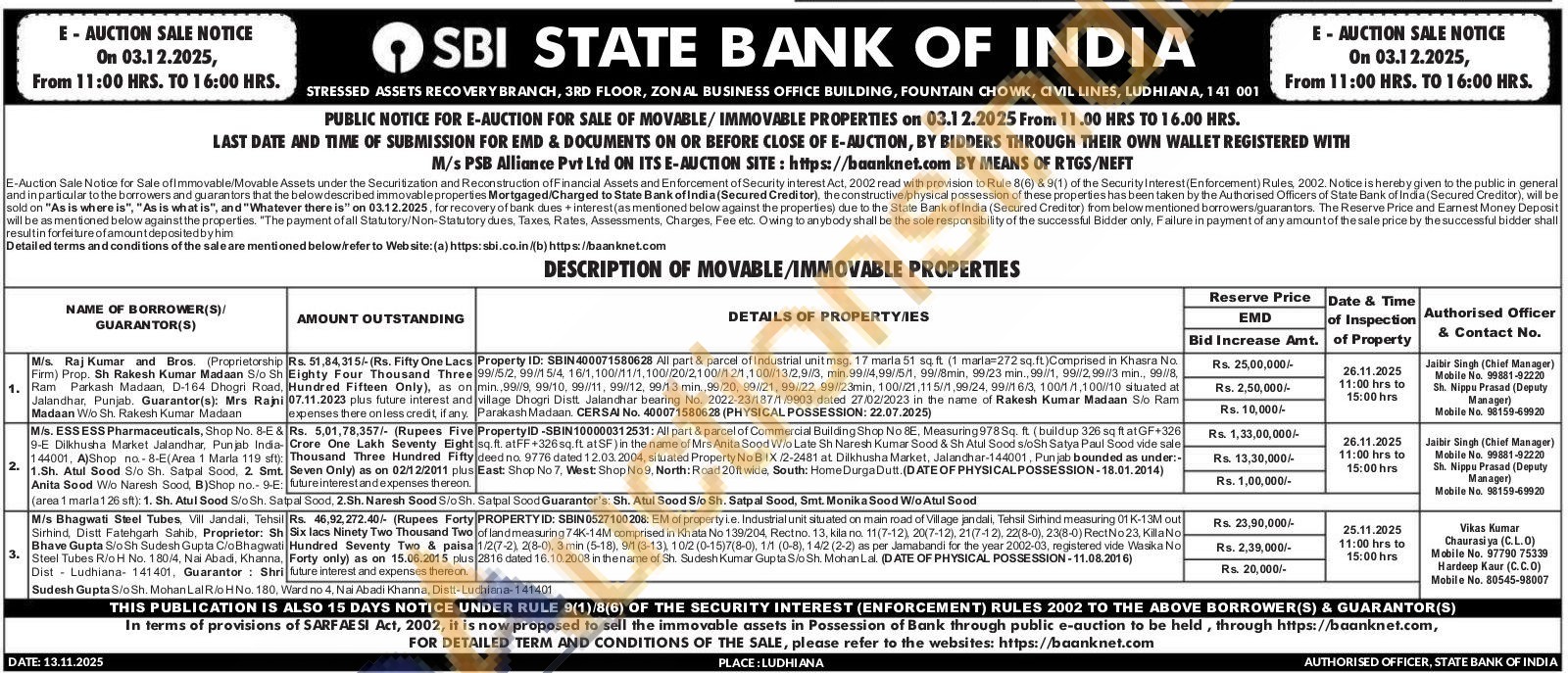 All part & parcel of Commercial Building Shop No 8E, Measuring 978Sq. ft (buildup 326 sq ft at GF+326 sq. ft. atFF+326 sq.ft at SF) in the name of Mrs Anita Sood W/o Late Sh Naresh Kumar Sood & Sh Atul Sood s/oSh Satya Paul Sood vide sale deed no. 9776 dated 12.03.2004, situated Property No B IX/2-2481 at Dilkhusha Market, Jalandhar-144001, Punjab bounded as under:-East: Shop No 7, West: Shop No9, North: Road 20ft wide, South: Home Durga Dutt. (DATE OF PHYSICALPOSSESSION-18.01.2014)