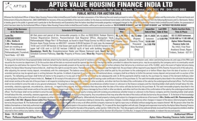 All that piece and parcel of the immovable property in (Doc no 3502/2024) Tenkasi District, Tenkasi Registration District, Pavoorchatram Sub Registrar Office. Alangulam Taluk. Pethonadarpatti Village Part-1 & Panchayat, as found in Ayan Punjai Survey no 486/22 now Sub Division Ayan Punjai Survey no.485/2201 consists 0.09.00 hectare 22 cent now As measured 19.50 cent in 0.07,89 hectare in that lower part south north 9.50 cent in 0.03.84 hectare in that upper half 4.500 cent in 0.01.82 hectare (1960.02 sq.ft) of land with building bounded by , Boundaries: North By. Sivasubramanian Nadar and Moses Samuvel Land, South By: 2nd Schedule Common Pathway, East By: Property of Ponnu Land, West By: Property of Murugan Land