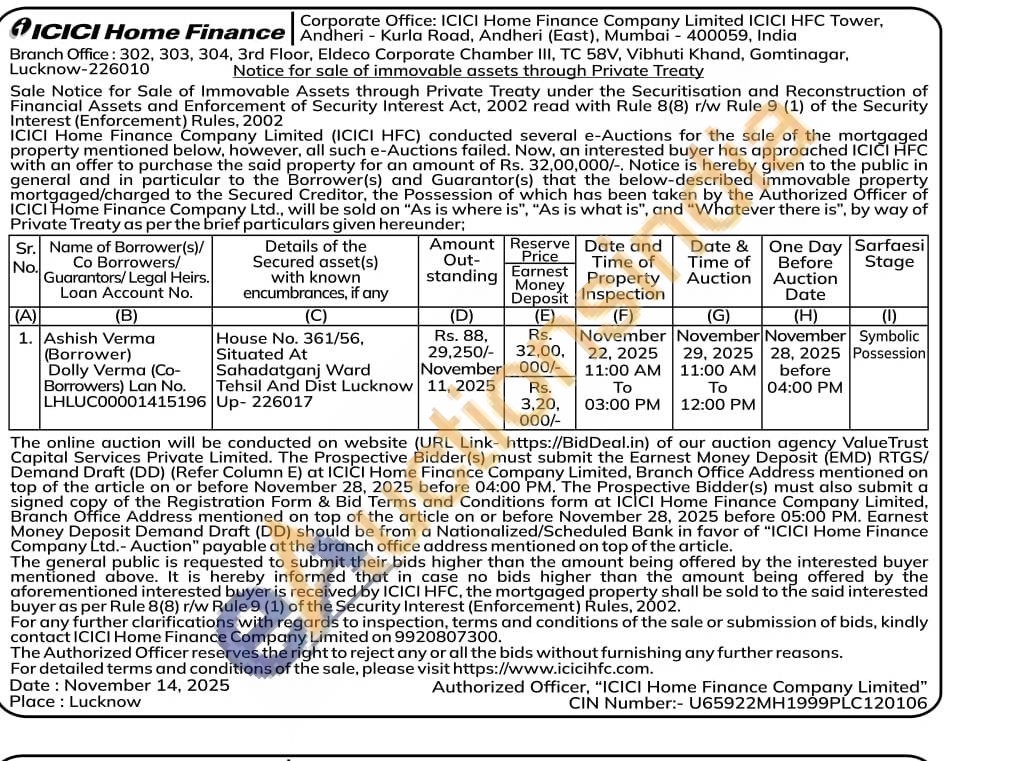 House No. 361/56, Situated At Sahadatganj Ward Tehsil And Dist Lucknow Up -226017