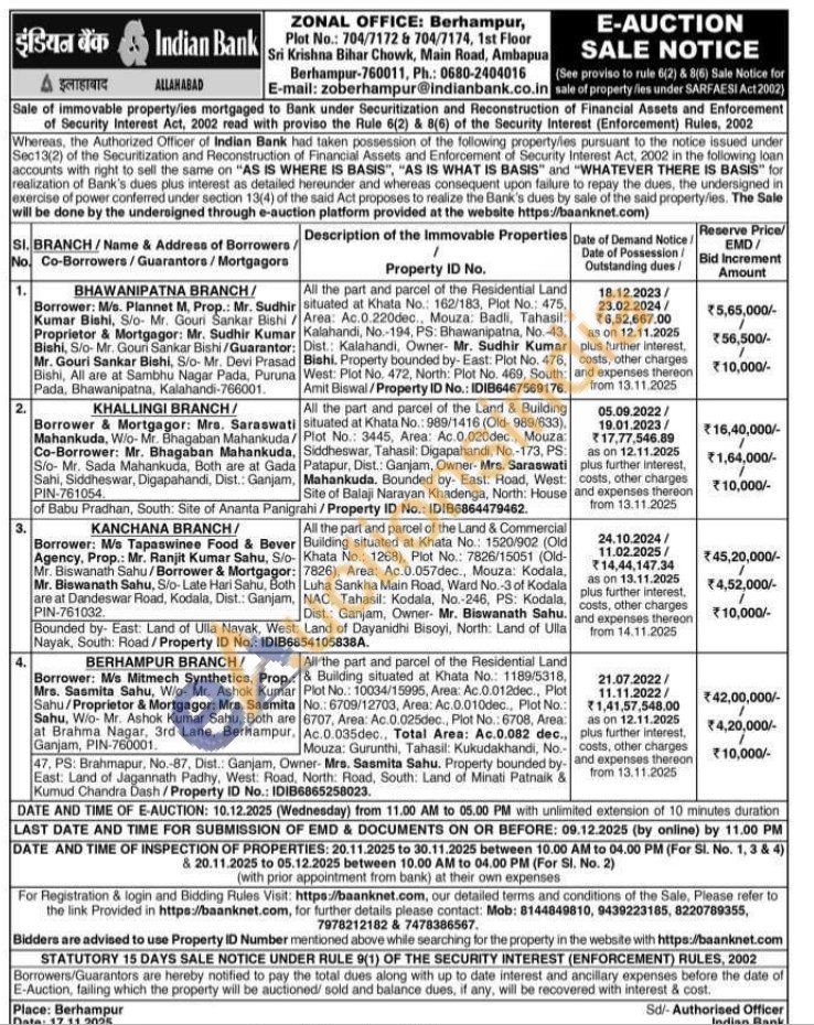 All the part and parcel of the Residential Land situated at Khata No.: 162/183, Plot No.: 475, Area: Ac.0.220dec., Mouza: Badli, Tahasil: Kalahandi, No.-194, PS: Bhawanipatna, No.-43, Dist.: Kalahandi, Owner- Mr. Sudhir Kumar Bishi. Property bounded by- East: Plot No. 476, West: Plot No. 472, North: Plot No. 469, South: Amit Biswal/Property ID No.: IDIB6467569176.