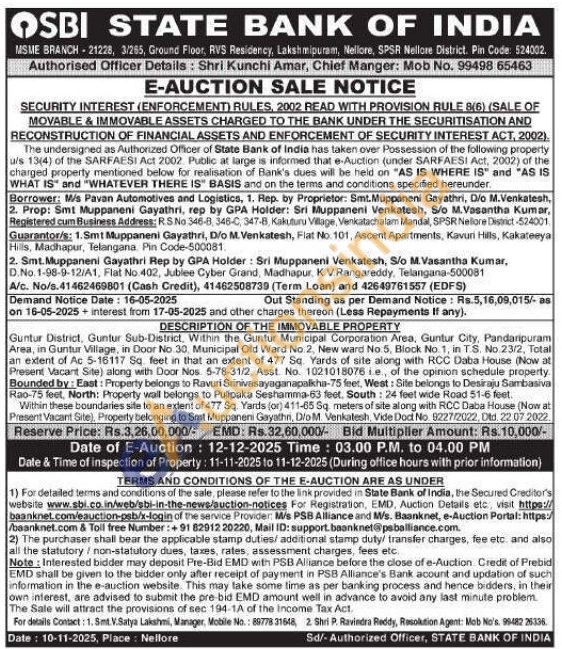 Guntur District, Guntur Sub-District, Within the Guntur Municipal Corporation Area, Guntur City, Pandaripuram Area, in Guntur Village, in Door No 30. Municipal Old Ward No. 2, New ward No. 5, Block No. 1, in TS. No 23/2, Total an extent of Ac 5-16117 Sq. feet in that an extent of 477 Sq. Yards of site along with RCC Daba House (Now at Present Vacant Site) along with Door Nos 5-78-31/2, Asst. No. 1021018076 ie,