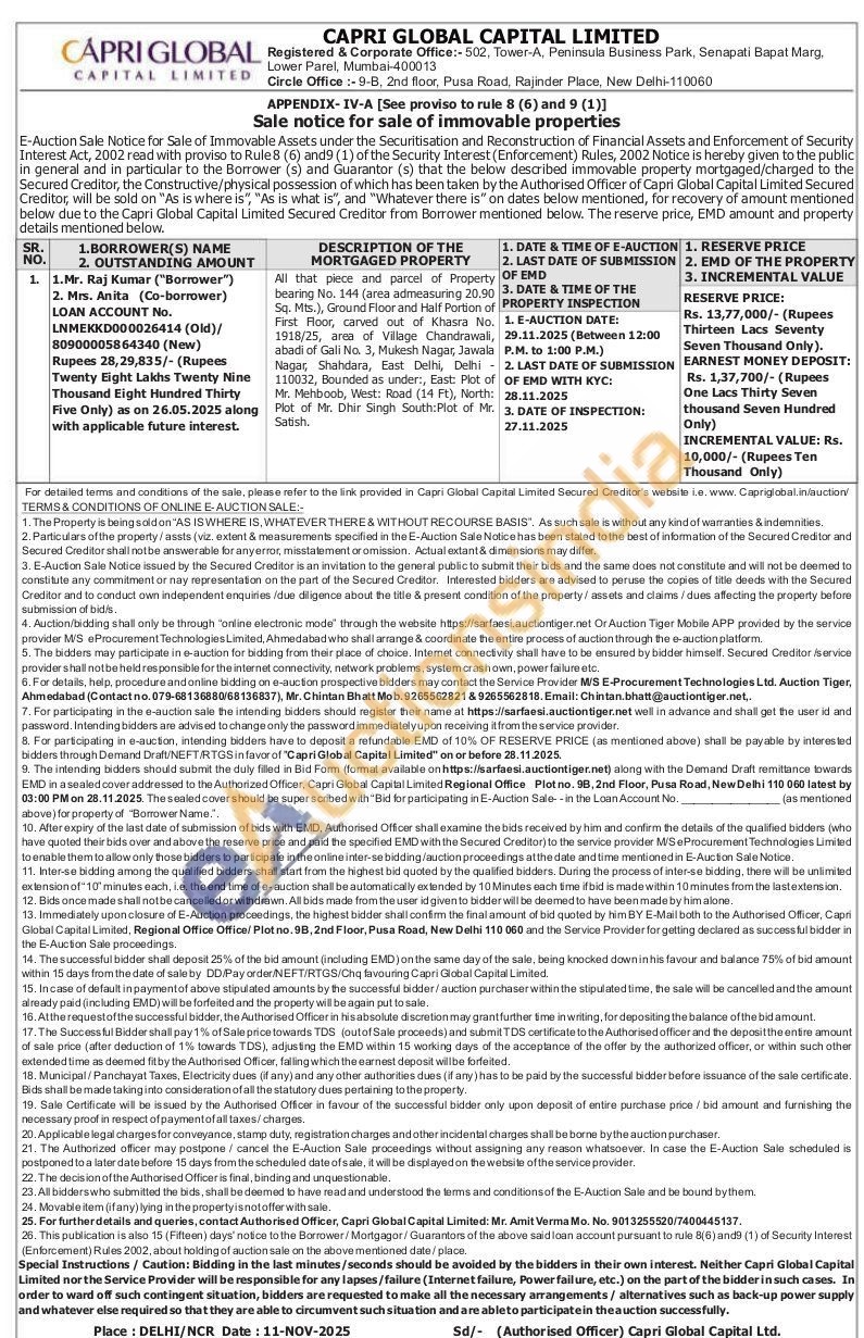 All that piece and parcel of Property bearing No. 144 (area admeasuring 20.90 Sq. Mts.), Ground Floor and Half Portion of First Roor, carved out of Khasra No. 1918/25, area of Village Chandrawali, abadi of Gali No. 3, Mukesh Nagar, Jawala Nagar, Shahdara, East Delhi, Delhi 110032,