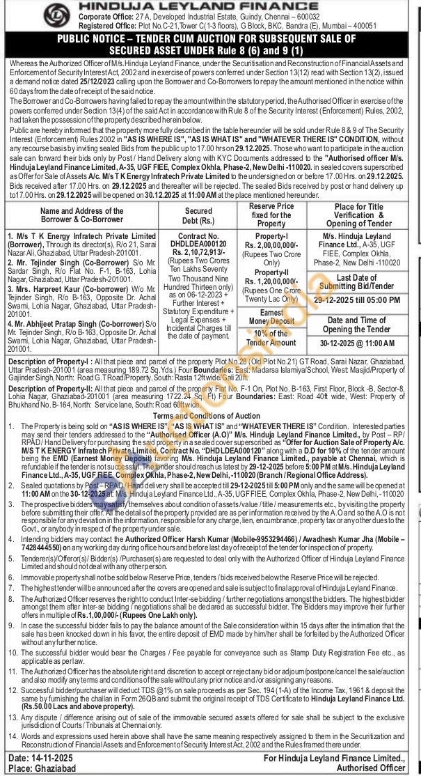 Description of Property-l: All that piece and parcel of the property Plot No.28 (Old Plot No.21) GT Road, Sarai Nazar, Ghaziabad, Uttar Pradesh-201001 (ares measuring 189.72 Sg. Yds.) Four Boundaries: East: Madarsa Islamiya/School, West Masjid/Property of Gajinder Singh, North: Road G.TRoad/Property, South: Rasta 12ft wide/Gali 20ft