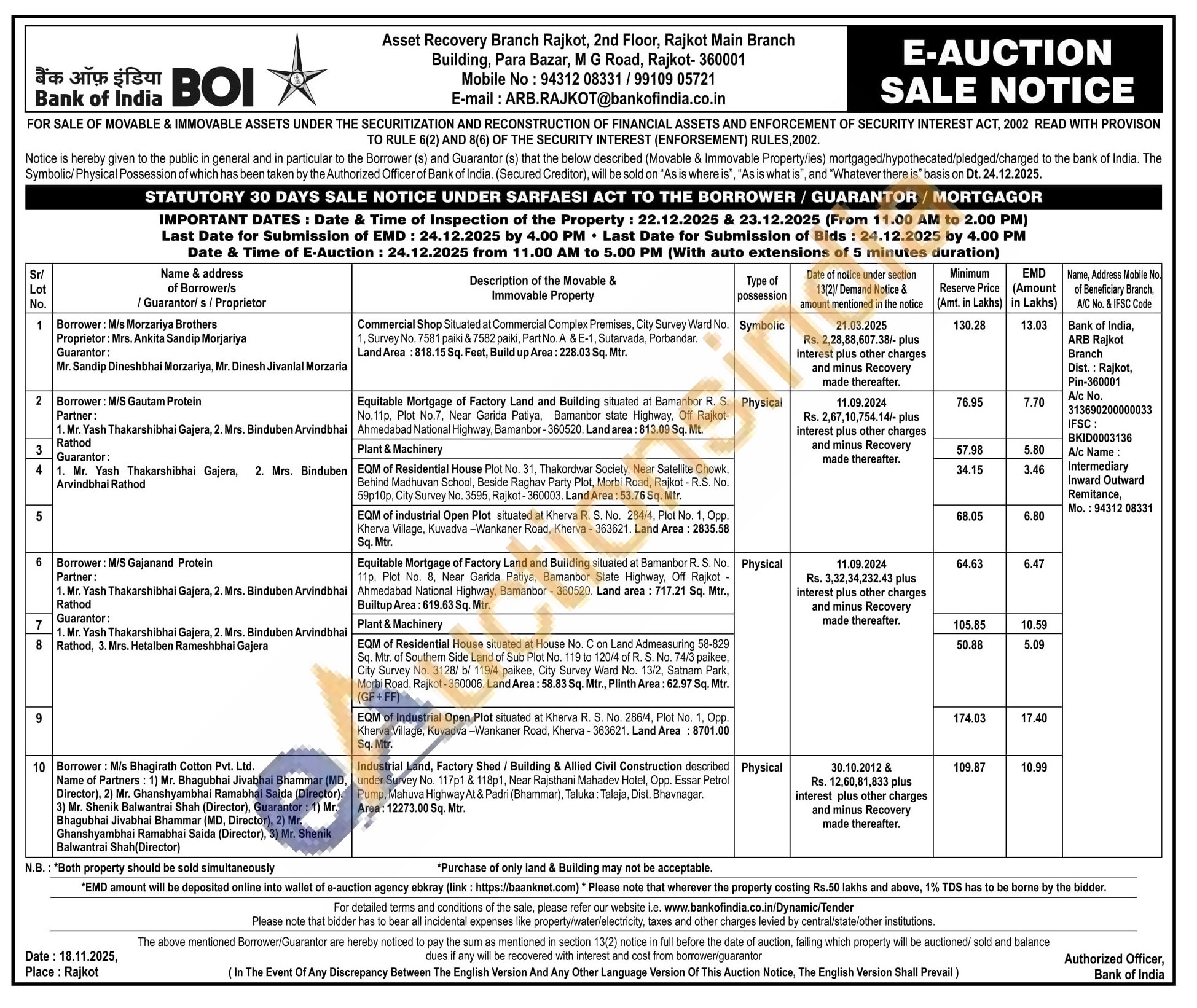 Bank of India Plant & Machinery Auction in Surendranagar, Surendranagar