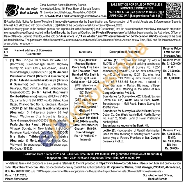 Plant And Machinery lying at factory premises of M/s Google Ceramics Private Ltd