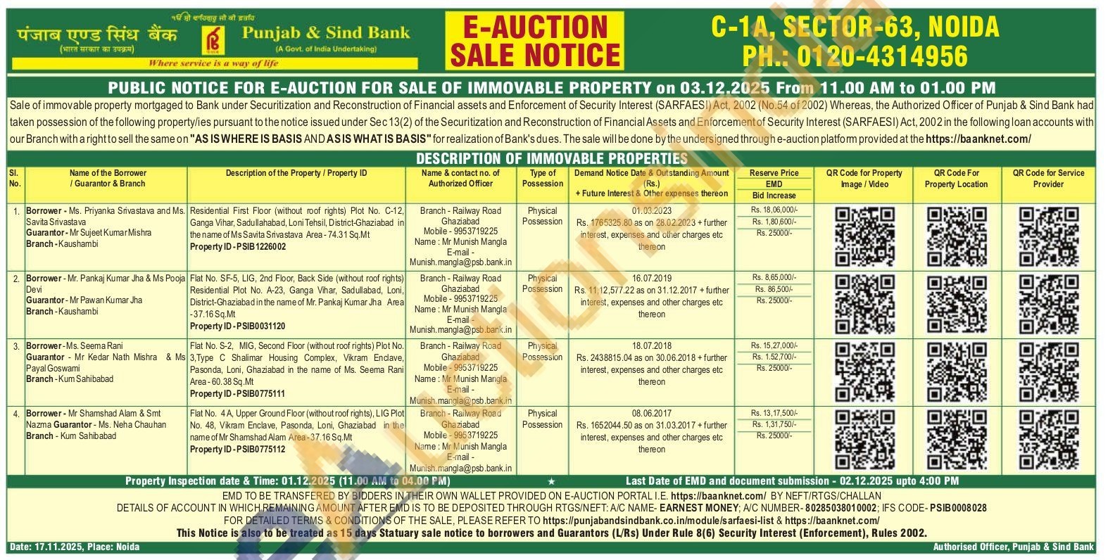 Residential First Floor (without roof rights) Plot No. C-12, Ganga Vihar, Sadullahabad, Loni Tehsil, District-Ghaziabad in the name of Ms Savita Srivastava Area-74.31 Sq.Mt Property ID-PSIB 1226002