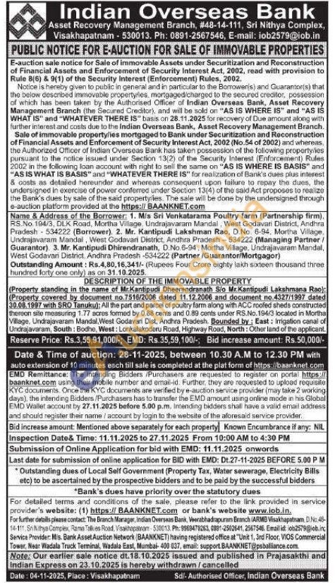 All the part and parcel of poultry farm along with ACC roofed sheds constructed thereon sile measuring 1.77 acres formed by 0.88 cents and 0.89 cents under RS.No. 194/3 located in Mortha Village, Undrajavaram Mandal, West Godavari Dist, Andhra Pradesh