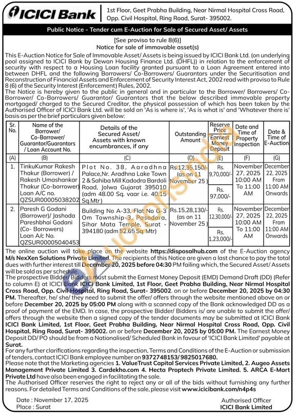 Building No A-33, Flat No G-3 Om Township-3, Pasodara, Sihar Mata Temple, Surat 394180 (adm 52.65 Sq. Mtr