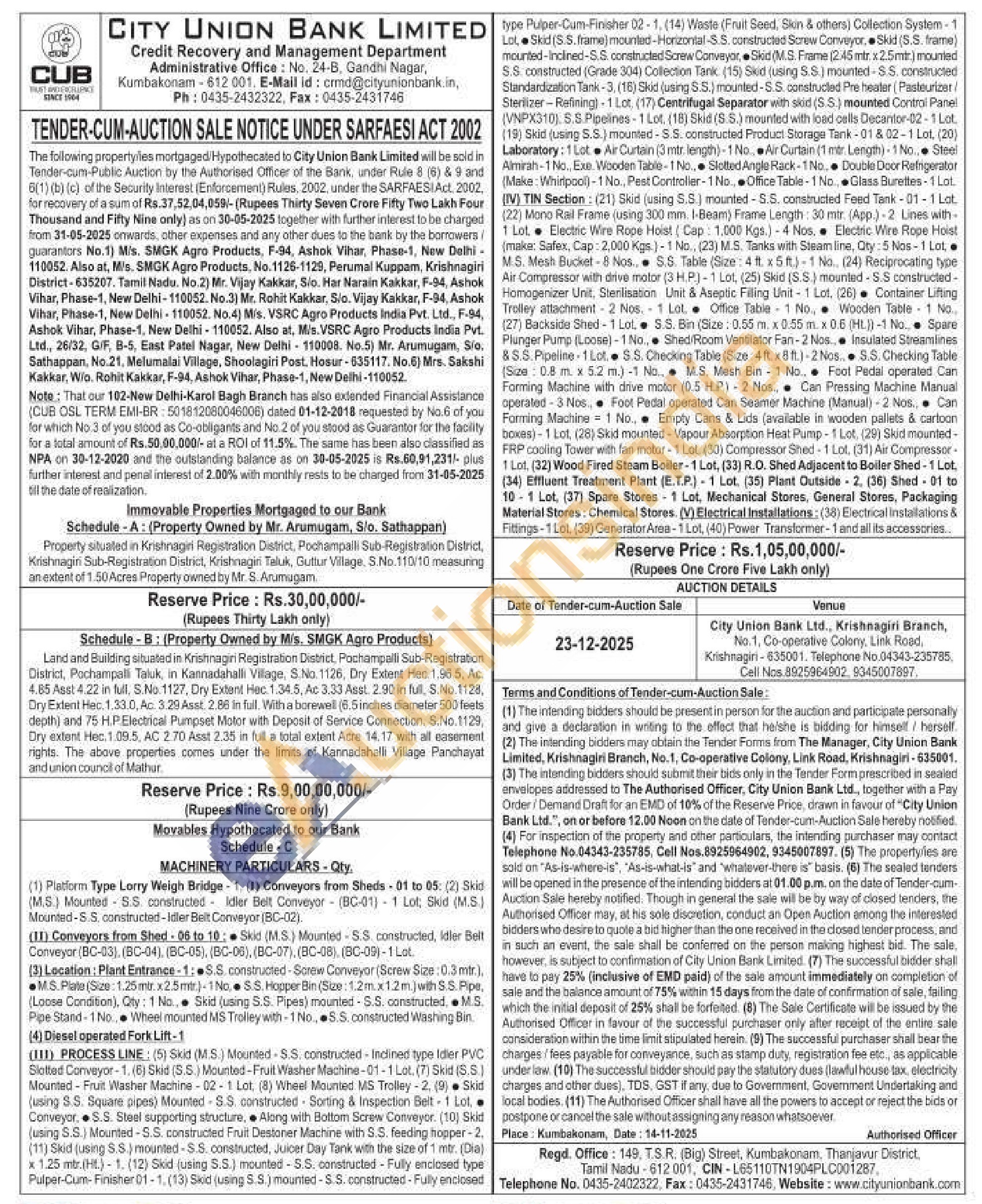 (1) Platform Type Lorry Weigh Bridge - 1. (1) Coriveyors from Sheds-01 to 05: (2) Skid (MS) Mounted-5.5. constructed idler Belt Conveyor (BC-01)-1 Lot Skid (M.S.) Mounted-SS constructed-Idler Belt Conveyor (BC-02) (11) Conveyors from Shed 06 to 10: Skid (MS) Mounted -5.5. constructed, Idler Belt Conveyor (BC-113), (BC-04), (BC-05), (BC-06), (BC-07), (BC-08), (BC-09)-1 Lat.(3) Location: Plant Entrance-1: S.S. constructed Screw Conveyor (Screw Size: 0.3 mtr.), MS. Plate (Size: 1.25 mir.x2.5mtr)-1 No. S.S. Hopper Bin (Size: 1.2mx1.2m)with SS. Pipe, (Loose Condition), Qty: 1 No. Skid (using S.S. Pipes) mounted-S.S. constructed, MS. Pipe Stand-1 No... Wheel mounted MS Trolley with-1 No., S. S. constructed Washing Bin