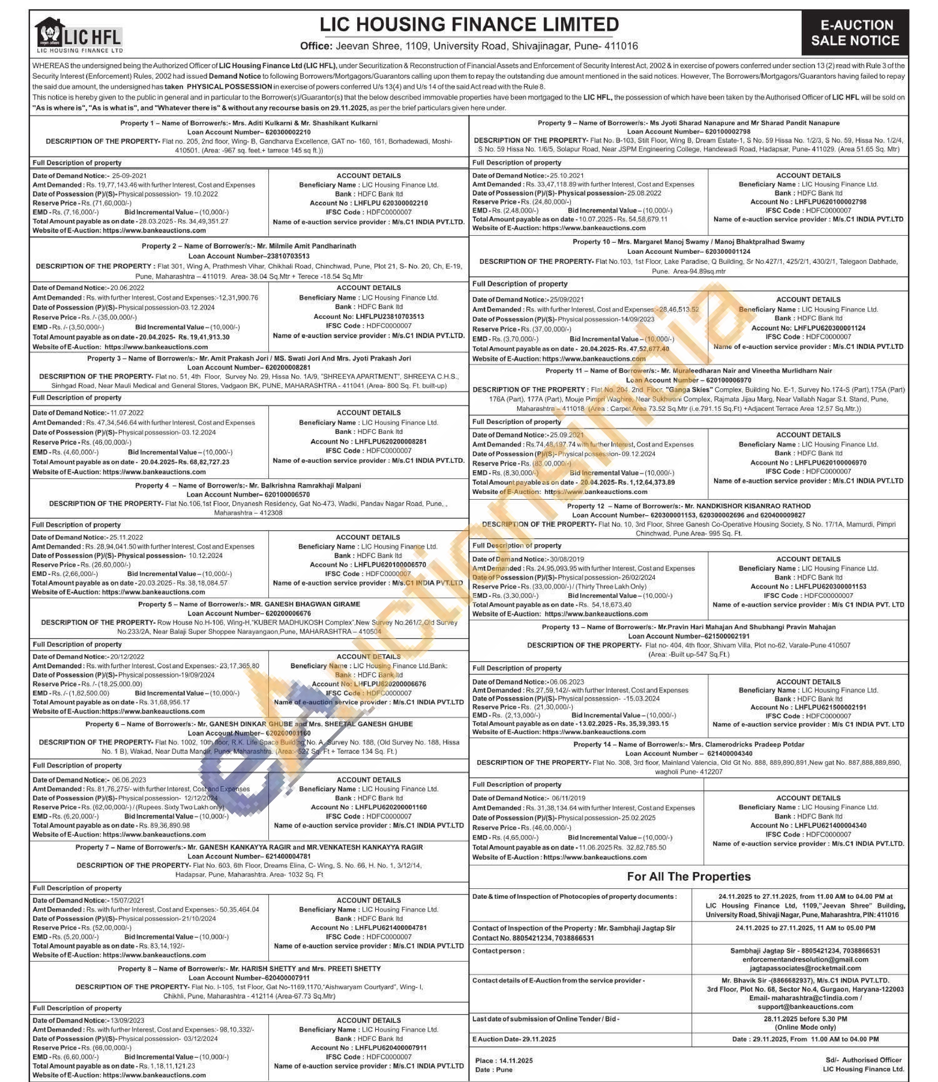 DESCRIPTION OF THE PROPERTY-Flat No. 103, 1st Floor, Lake Paradise, Q Building, Sr No.427/1, 425/2/1, 430/2/1, Talegaon Dabhade, Pune. Area-94.89sq.mtr