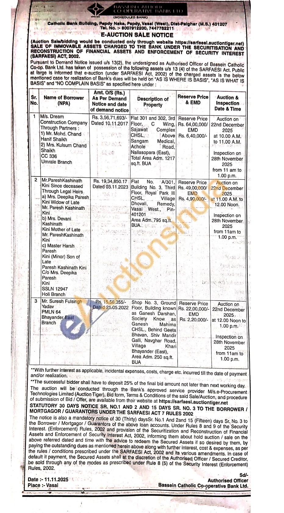 Shop No. 3, Ground Floor, Building known Society Know. as as Ganesh Darshan, Ganesh Mahima CHSL., Behind Geeta Bhavan, Shiv Mandir Galli, Navghar Road, Village Khari Bhayander (East), Area Adm. 250 sq.ft. BUA