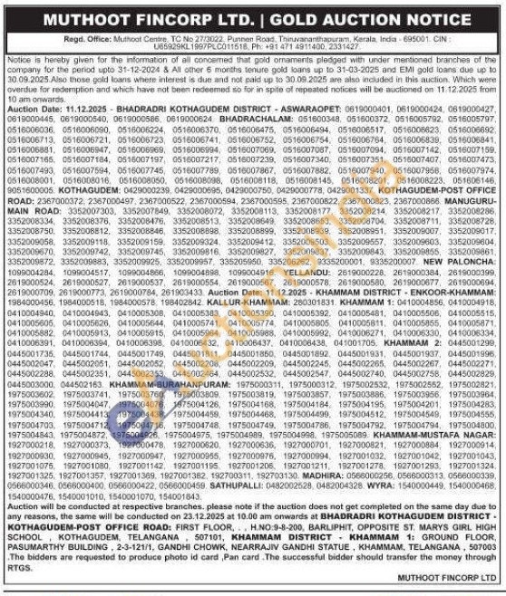 Muthoot Fincorp Ltd Gold Auctions Auction in Thiruvananthapuram