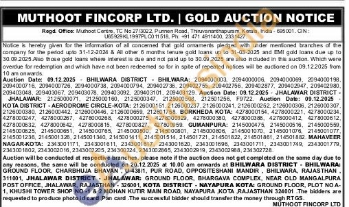 Muthoot Fincorp Ltd Gold Auctions Auction in Thiruvananthapuram