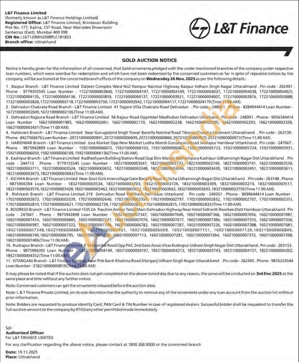 L&T Finance Ltd. Gold Auctions Auction in Mumbai